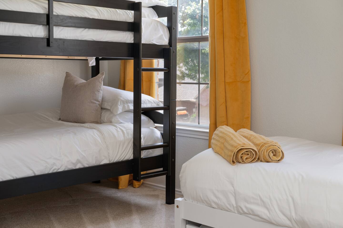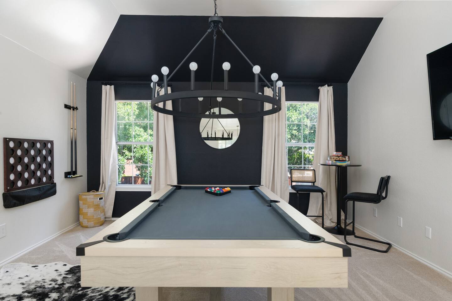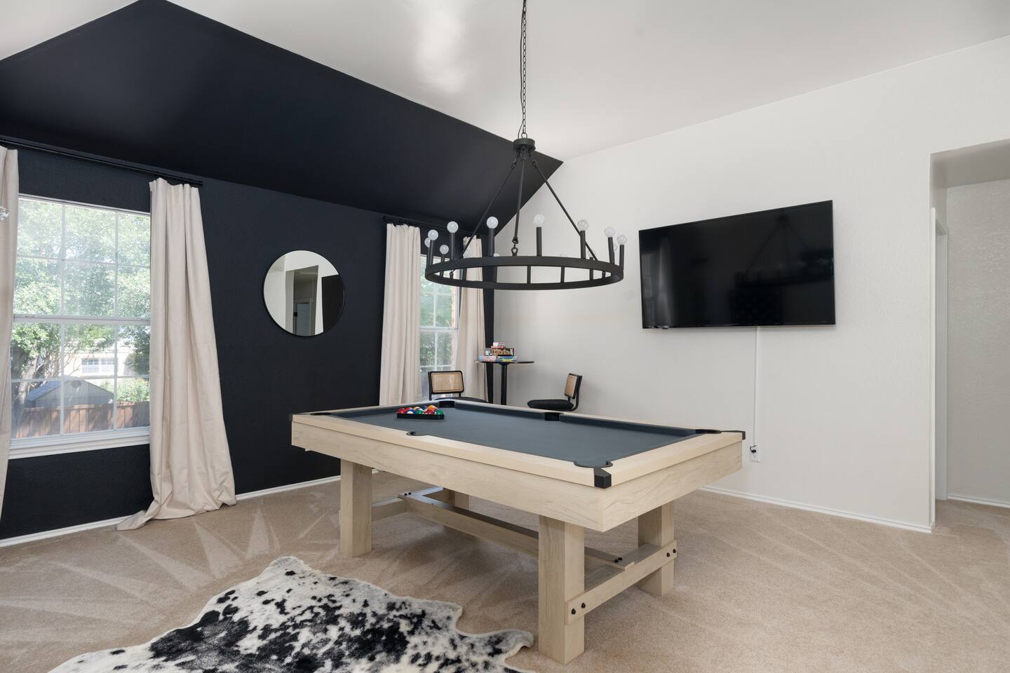 WE HAVE A STRICT 5 CAR MAXIMUM POLICY. 2 GARAGE, 2 DRIVEWAY, 1 STREET. Any additional cars will need to be parked off site in a public parking lot due to local laws and neighborhood space. Private backyard oasis with a large in ground pool! Complemented with miniature golf, cornhole, bicycles, and a spa (electric heater which reaches 100°F depending on the time of year). Pool Heating Option: Heat the pool to a cozy 85°F for just $100/day, or 90° for $150 a day, covering expenses only—we make no profit! Request pool heating at least 2-3 days before check-in. Payment is required before check-in, as we cannot start heating until payment is received. Free Netflix & Fiber Optic Wifi w/ a work space & concierge service Add our listing to your wishlist by click the ♡ in the upper right corner "I HIGHLY recommend this place and as an Airbnb host myself I can say they are the best of the best hosts and truly have setup an amazing home!" ★★★★★ Please refrain from any loud outdoor noises (voices, music, etc) after 10pm due to neighborhood and city laws. Also, please only park in front of the home, in the driveway, or in the garage and avoid passing in front of neighbors homes or driveways when parking. Sleeping Rooms - Bedroom 1: King bed - Bedroom 2: King bed - Bedroom 3: Queen bed - Bedroom 4: Queen bed - Bedroom 5: 4 twins - Living room: Queen air mattress We do not provide a grill for the time being. “Sammy and Ty were the best hosts I could have asked for on my Bachelorette Weekend! They were friendly, responsive, and went above and beyond to make our stay with them special. I would 100% recommend booking this BnB!” ★★★★★ The only true con of our property will be when you have to leave! We have wonderful amenities and aim to provide you everything you will need: Step inside and be greeted by modern sophistication and comfort. The expansive living room features a huge TV, perfect for movie nights or cozying up with loved ones. Upstairs, a spacious open game area awaits, complete with a pool table, a wall-mounted basketball hoop for shooting hoops, and a thrilling 4 in a row game, alongside another generous TV, ensuring endless entertainment for all. Indulge in personalized comfort in each uniquely designed bedroom, equipped with its own TV for added convenience. With two bedrooms boasting lavish king-sized beds and four additional bedrooms offering their own distinctive charm, Citrus Serene comfortably accommodates up to 12 guests, making it ideal for families, friends, or corporate retreats. But the allure of Citrus Serene extends beyond its stylish interiors. Step outside into your own private paradise, where a remodeled backyard awaits. Take a refreshing dip in the sparkling chlorinated pool, unwind in the soothing spa, or test your skills on the miniature golf course. Challenge your companions to a friendly game of corn hole or a thrilling match of wall basketball, or simply soak up the Texas sun on comfortable tanning chairs. For indoor entertainment, the kitchen nook provides another area to play card and board games, creating cozy moments of laughter and fun. Whether you're gathering for a competitive round of Monopoly or a strategic game of poker, this inviting space is perfect for creating lasting memories. For outdoor enthusiasts, bicycles are available in the garage, allowing guests to explore the surrounding area at their leisure. Nearby Grapevine Lake beckons with its scenic trails, perfect for hiking and outdoor adventures. Whether you're seeking relaxation, recreation, or simply a memorable escape, Citrus Serene offers everything you need for an unforgettable stay. Book now and experience the ultimate in Texas hospitality!