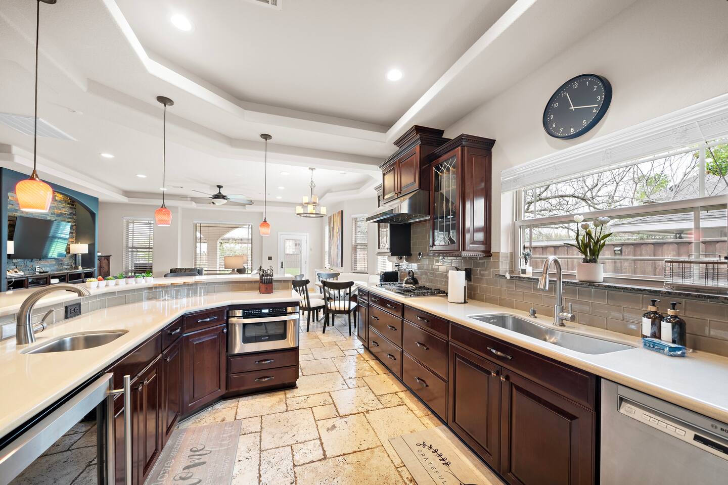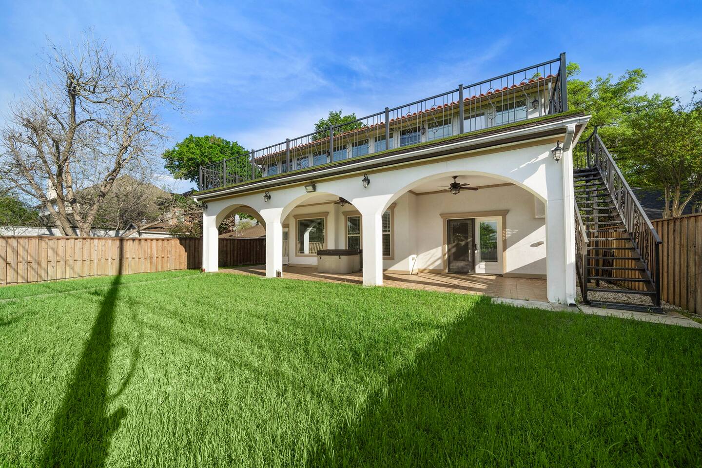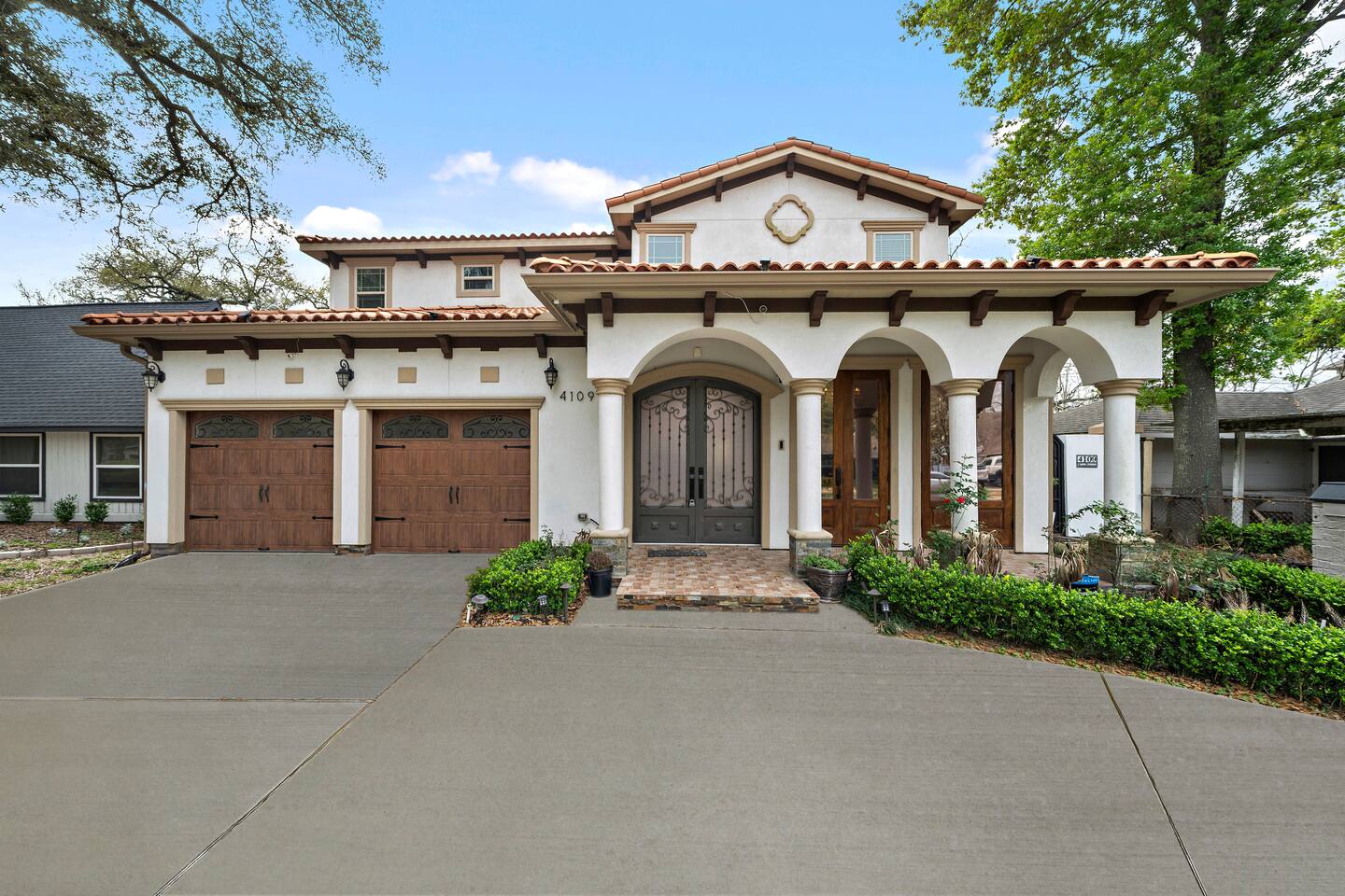 External security camera on the front side of the home facing the front yard and backyard facing the yard for your peace of mind. Temporarily records movement for protection of the property. During your stay, there may be services scheduled to maintain the 5 star experience for guests. Services such as landscaping, etc. These individuals will never enter the home, but may need to be on property to complete their work during your stay.