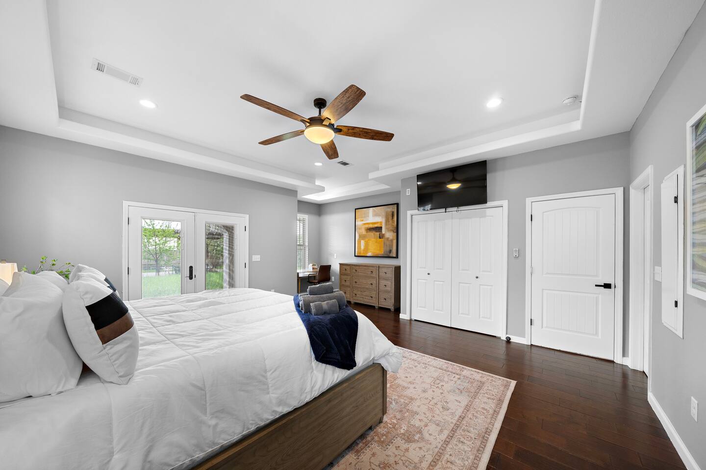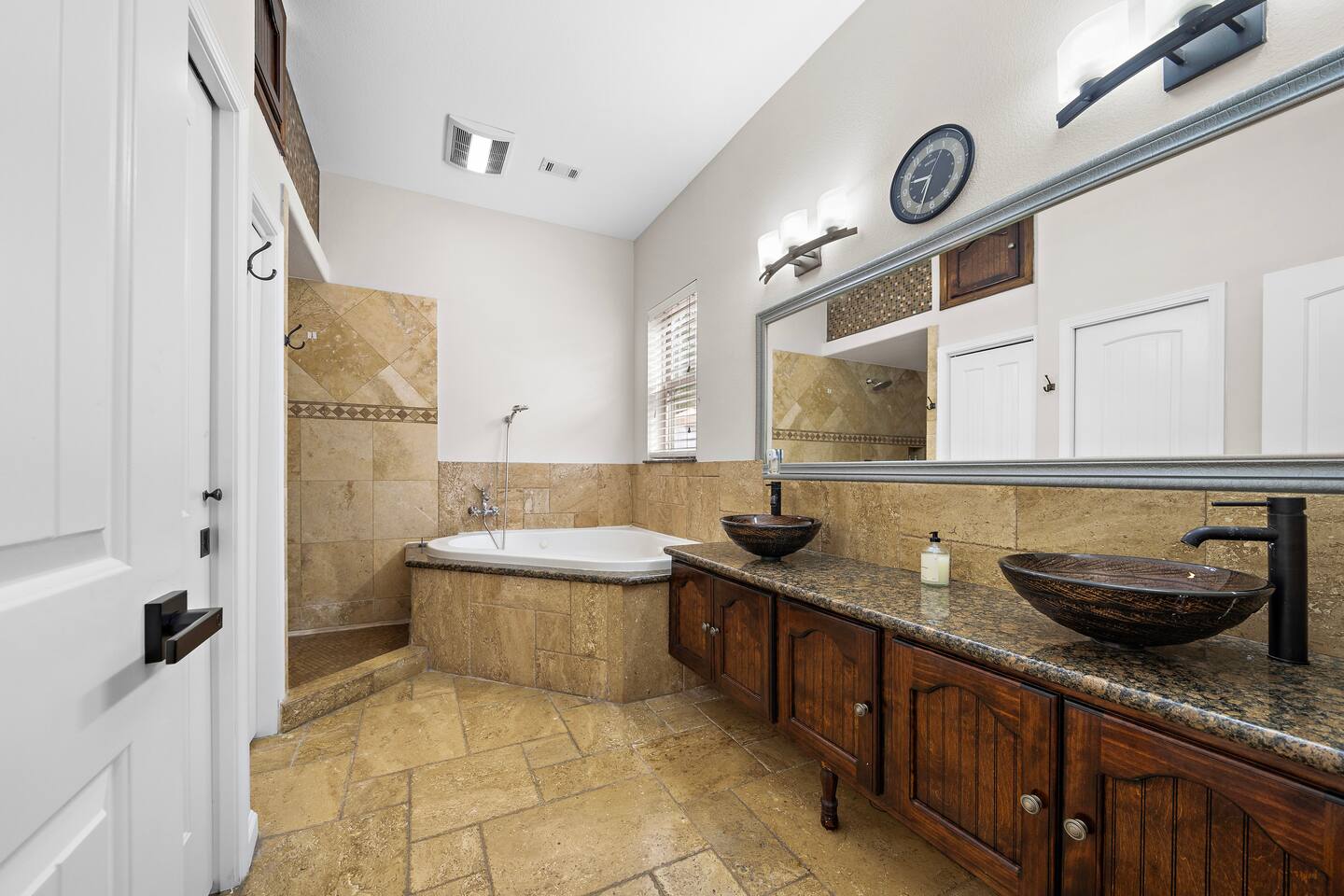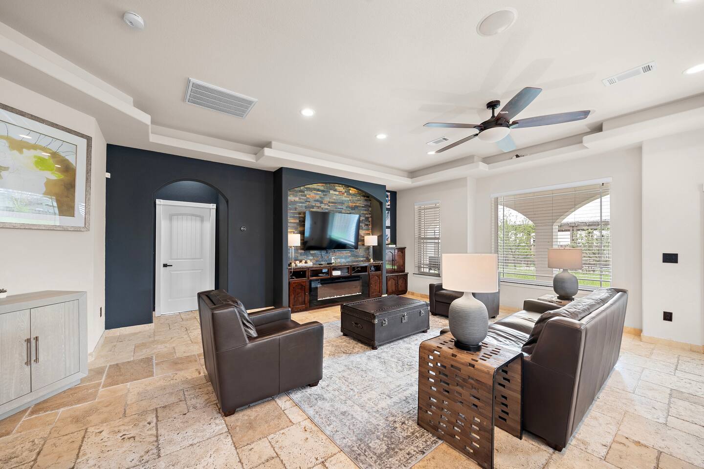 External security camera on the front side of the home facing the front yard and backyard facing the yard for your peace of mind. Temporarily records movement for protection of the property. During your stay, there may be services scheduled to maintain the 5 star experience for guests. Services such as landscaping, etc. These individuals will never enter the home, but may need to be on property to complete their work during your stay.