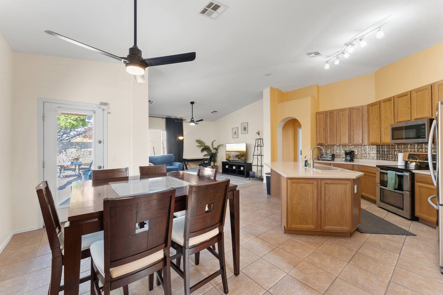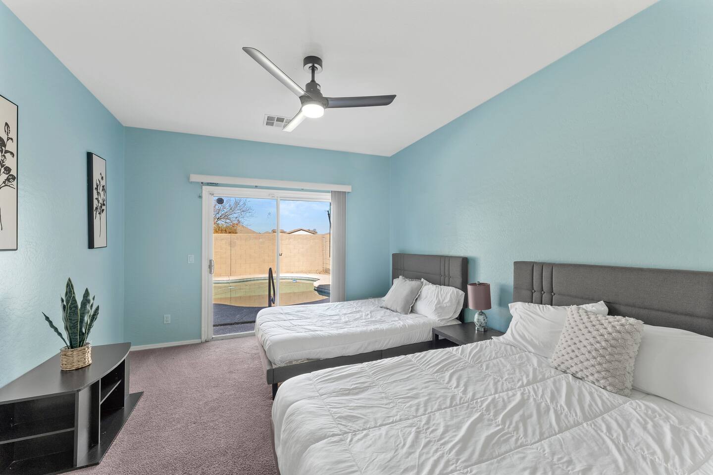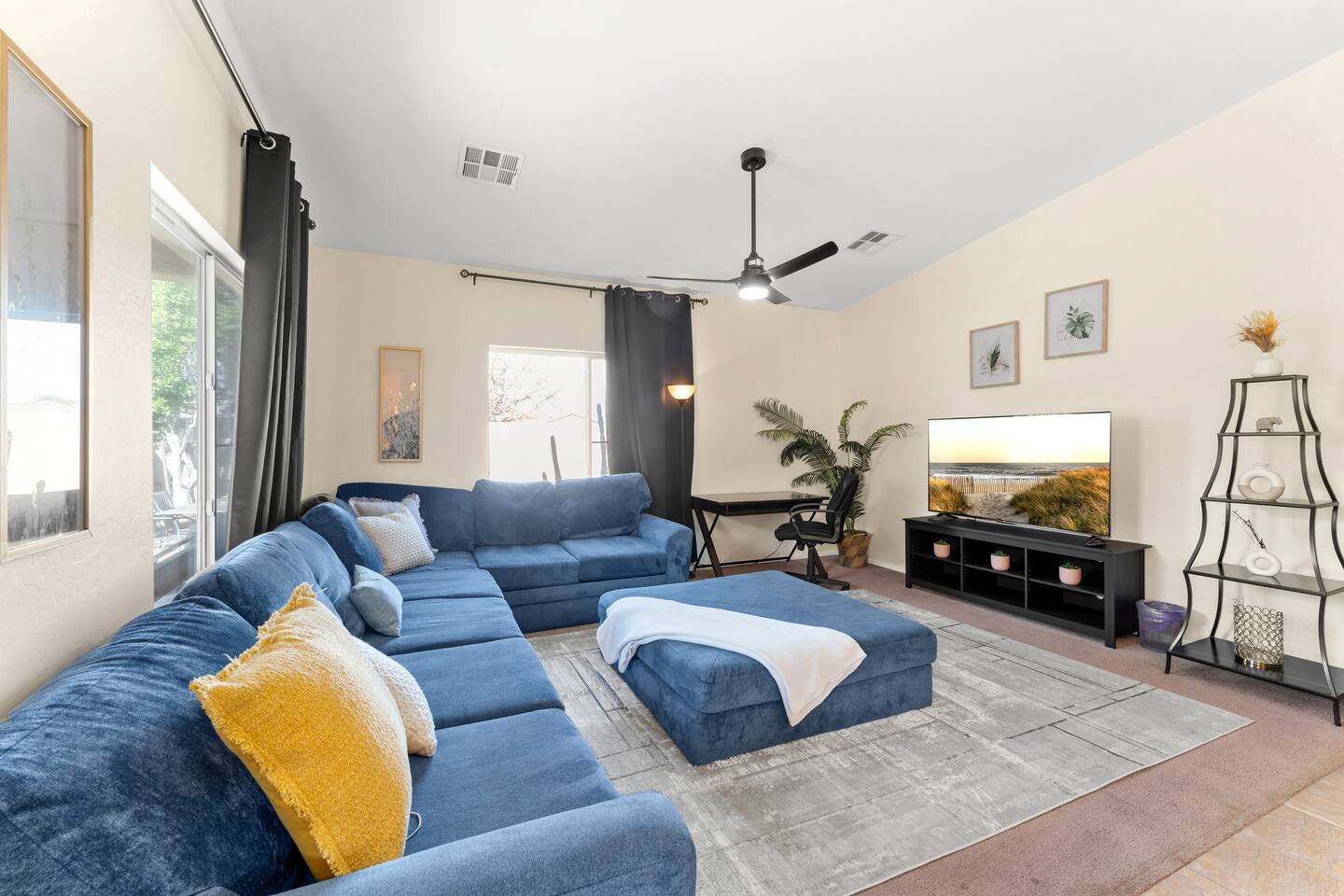 Welcome to Kingdom Kribs! Step into luxury with our beautiful pool and immerse yourself in this stylish and bright colored Surprise retreat. This stunning home provides cozy comfort, offering everything you need for an unforgettable stay. Perfectly located in the heart of Surprise, you’ll be just minutes from everything the city has to offer. Vibrant dining, shopping, and activities. Need more space for a bigger group? Ask us about our additional listing that sleeps 14 just 2 minutes away!
