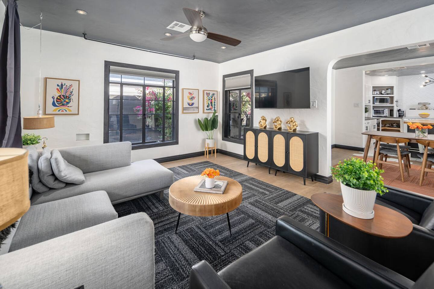 Welcome to Kingdom Kribs! Step into luxury with our stylish central Phoenix palm haven getaway with floral touches. Immerse yourself in this retreat with designer interiors. This stunning home combines modern luxury with cozy comfort, offering everything you need for an unforgettable stay. Perfectly located in the heart of Phoenix, you’ll be just minutes from downtown Phoenix's vibrant dining, shopping, and nightlife scenes.—just 5 minutes from downtown Phoenix.