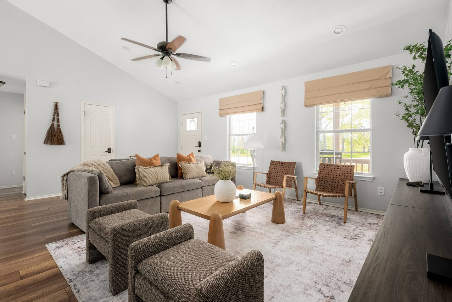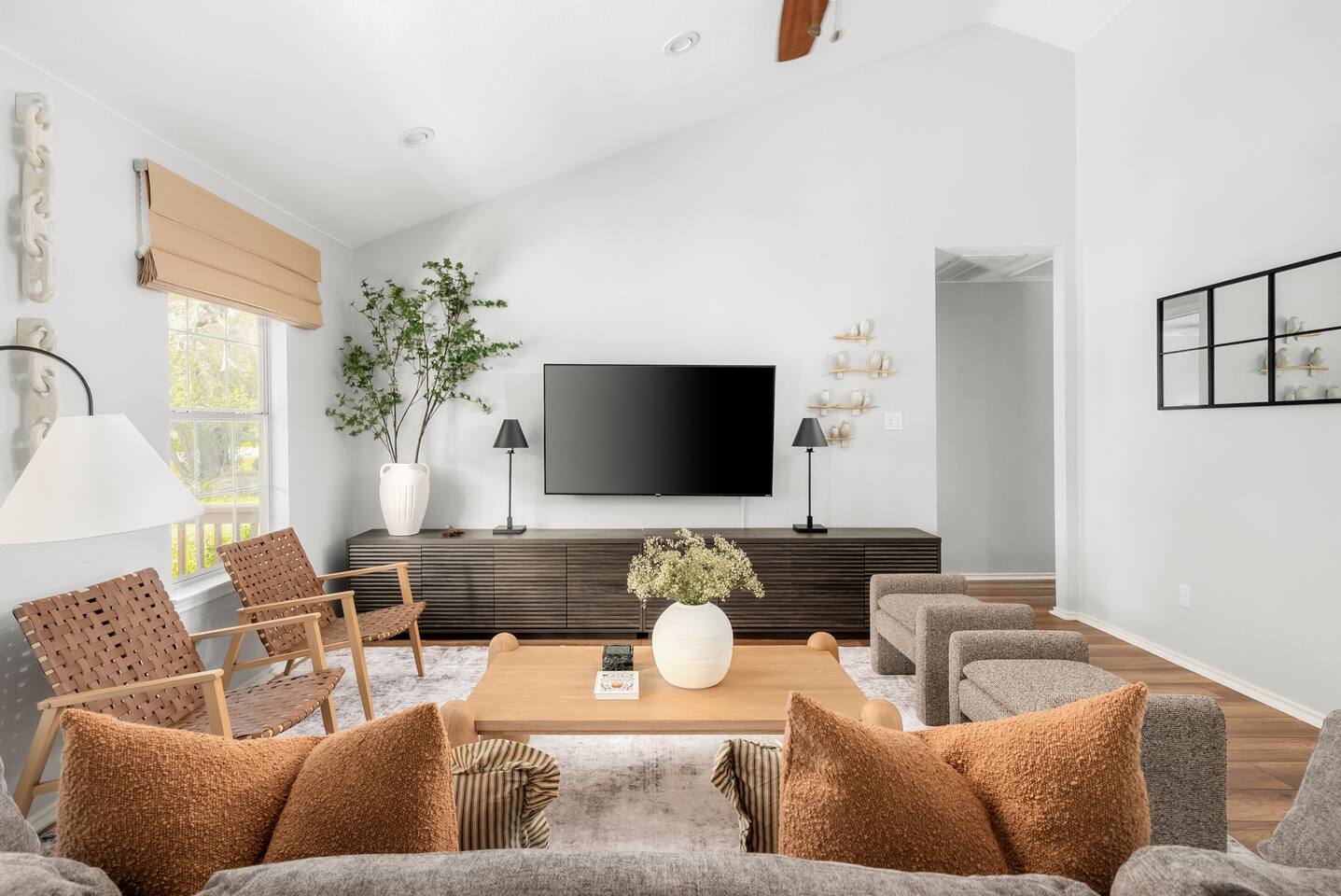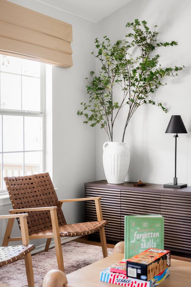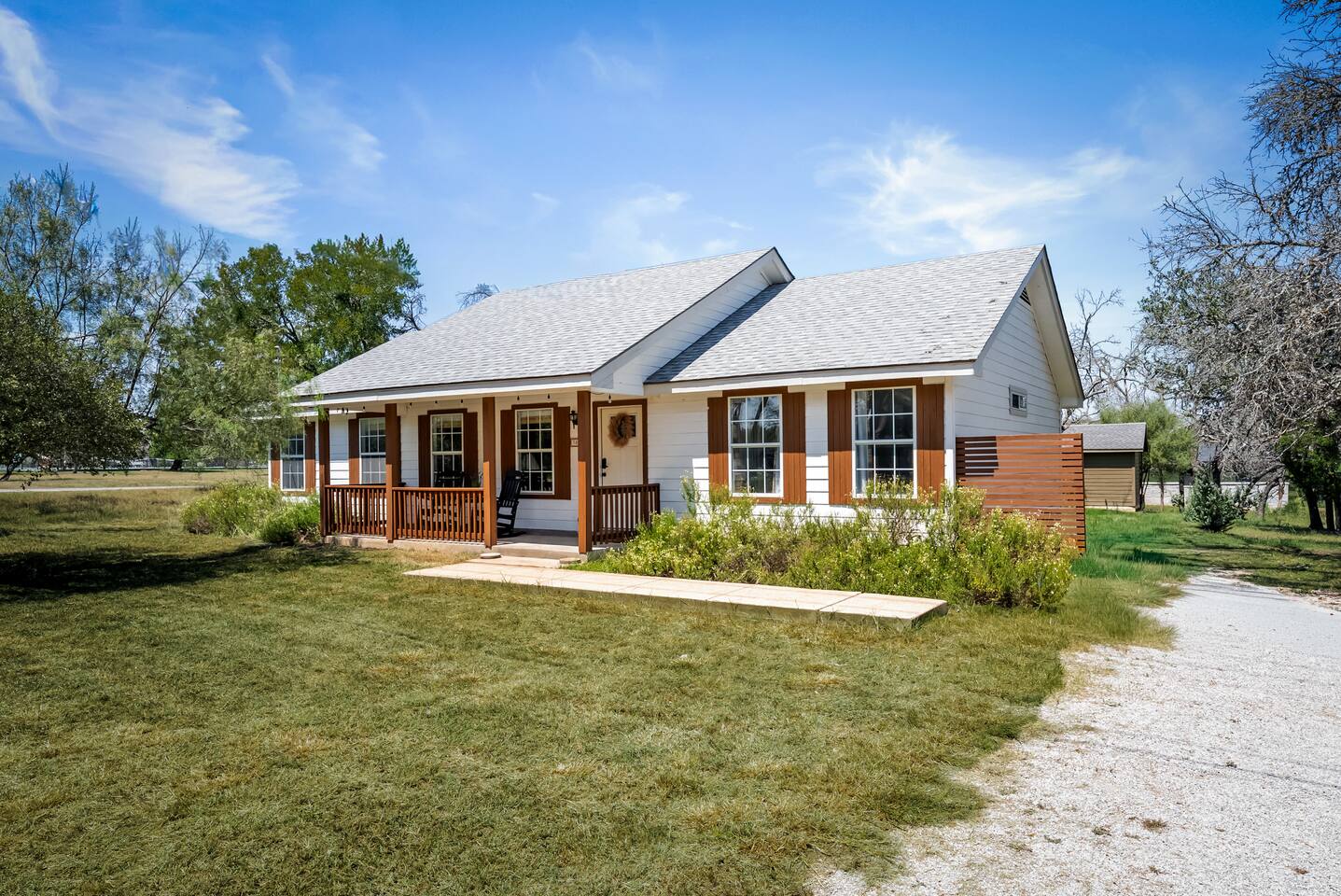 Welcome to Kingdom Kribs! Step into comfort with our professionally decorated Spicewood cottage. Immerse yourself in this peaceful Spicewood retreat with designer interiors and visits from deer every morning and evening. This stunning home combines sleek designs with cozy comfort, offering everything you need for an unforgettable stay. Located northwest of Austin, you’ll be just minutes from Lake Travis access —just 9 minutes from Grelle Recreation Area.