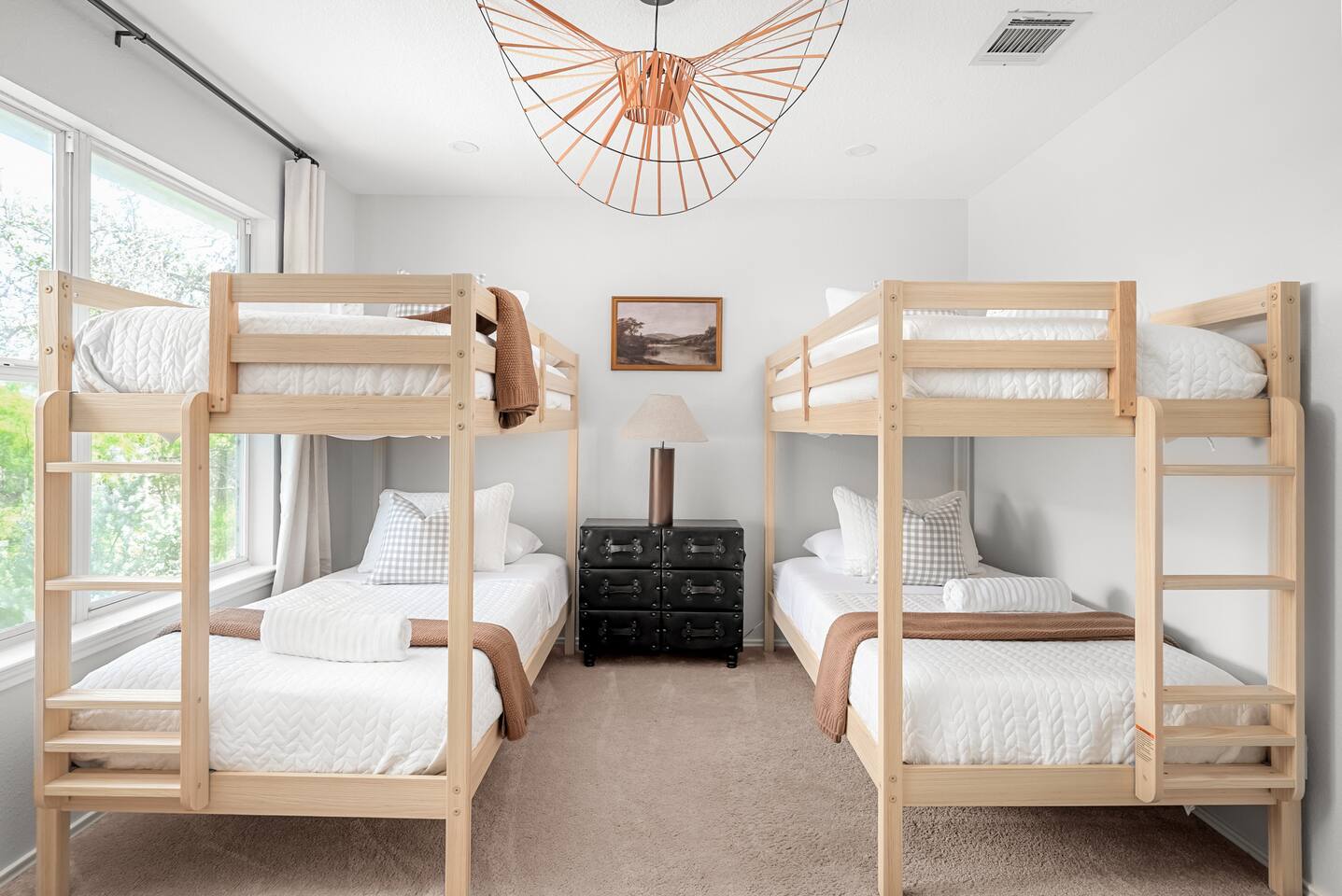 Add our listing to your wishlist by clicking the ♡ in the upper right corner! Local attractions: • Krause Springs - a google search will tell you all you need to know. so unique! • Grelle Recreation Area • Muleshoe Bend Recreation Area - hiking along Lake Travis, mountain biking, fishing, swimming, and picnics. Bluebonnet season is March to May! • Spicewood Vineyards & Wineries • Pizzeria Sorellina - community hotspot. Pizza, wine, beer, music and a playground! • Local Golf Courses • Briarcliff Marina - less than 20 minutes away. Rent a boat or drop your own. From water sports to fishing to relaxing lake days, they have every option! • Angels Ice House (live music) • Poodies Honky Tonk • The Lighthouse Grill • Access to Lake Travis just minutes away If you like action, check out the animals at Exotic Resort Zoo, rent an ATX at Hidden Falls Adventure Park or zipline through the canopy of old growth cypress trees at Cypress Valley Canopy Tours. Amenities: • Neighborhood Pool, Pickleball & Tennis • Concierge service available Sleeping Arrangements: • Bedroom 1: King bed • Bedroom 2: Queen • Bedroom 3: 2 twin bunk beds (4 total) • Living Room: Queen air mattress Note: Bunk beds include a ladder and guard rails. Use at your own risk—we are not liable for any injuries.